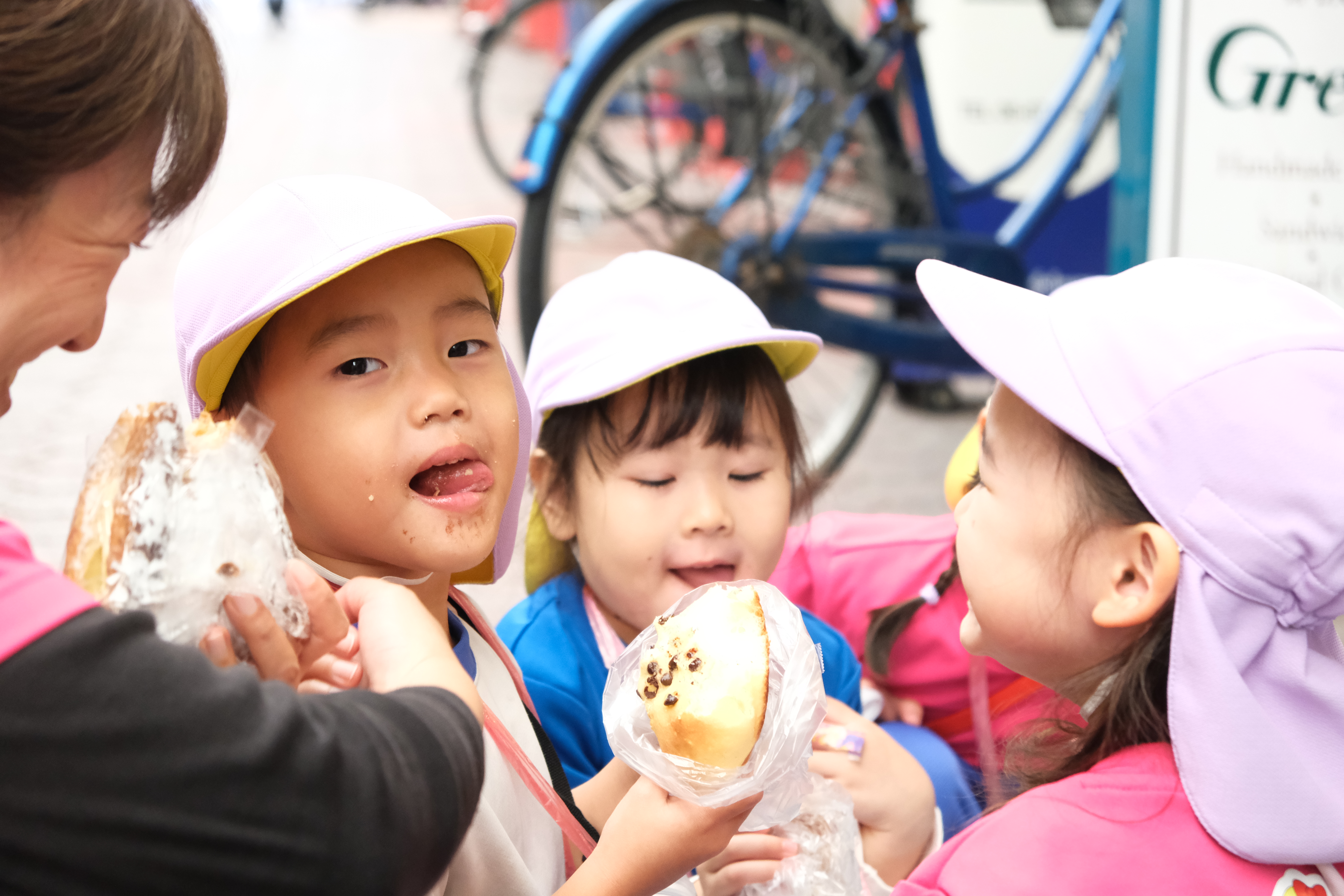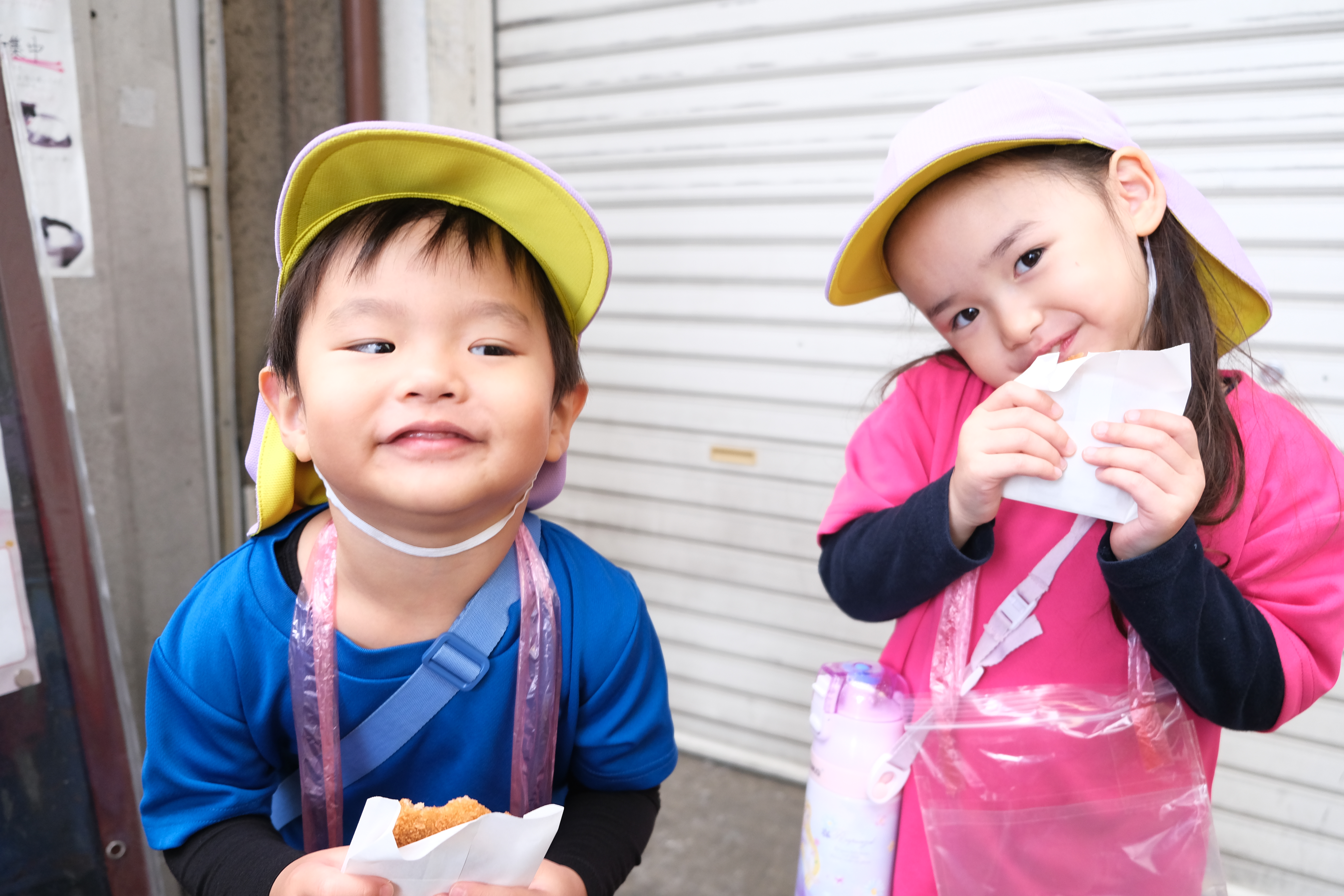 11月のテーマ「Food」に合わせて、年少クラスの子どもたちは園の近くにある「空堀商店街」へ