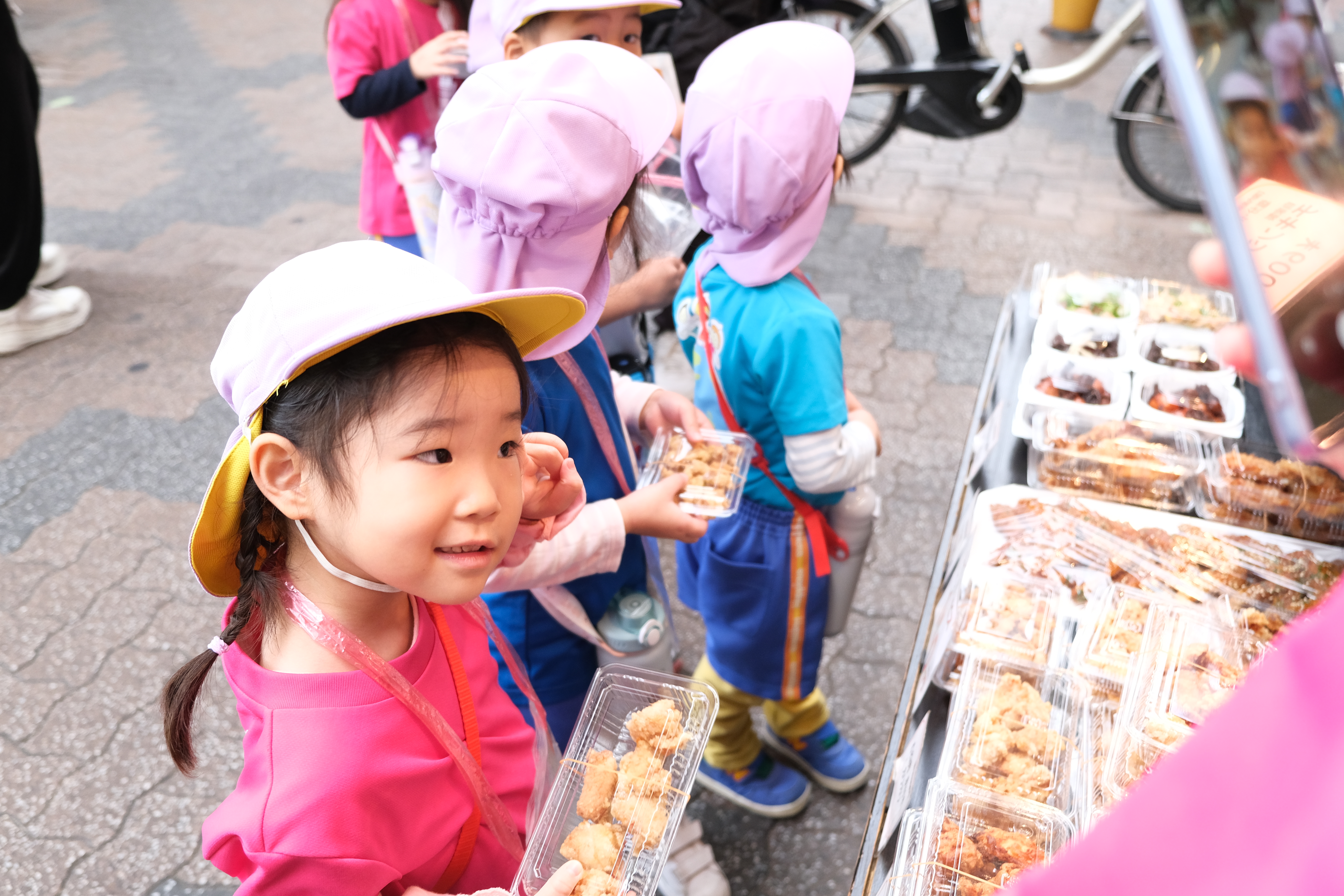 商店街にはたくさんのお店が並び、子どもたちは「何を買ってみたい?」「どれを食べてみたい?」と、自分の気持ちに正直に(笑)ワクワクしながら食べ歩きを楽しみました