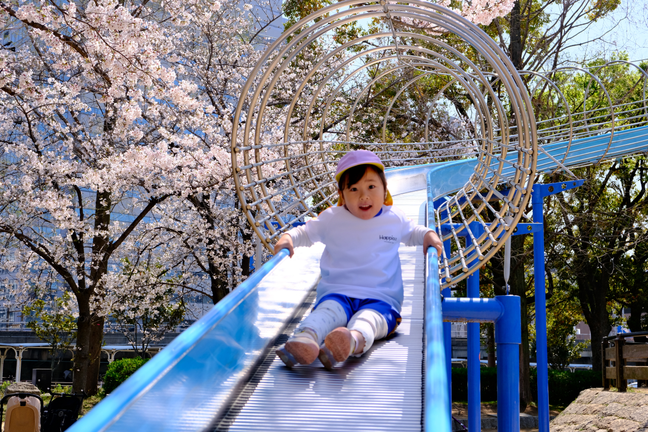 大阪城公園では、それぞれが思い思いに遊具で遊びました。