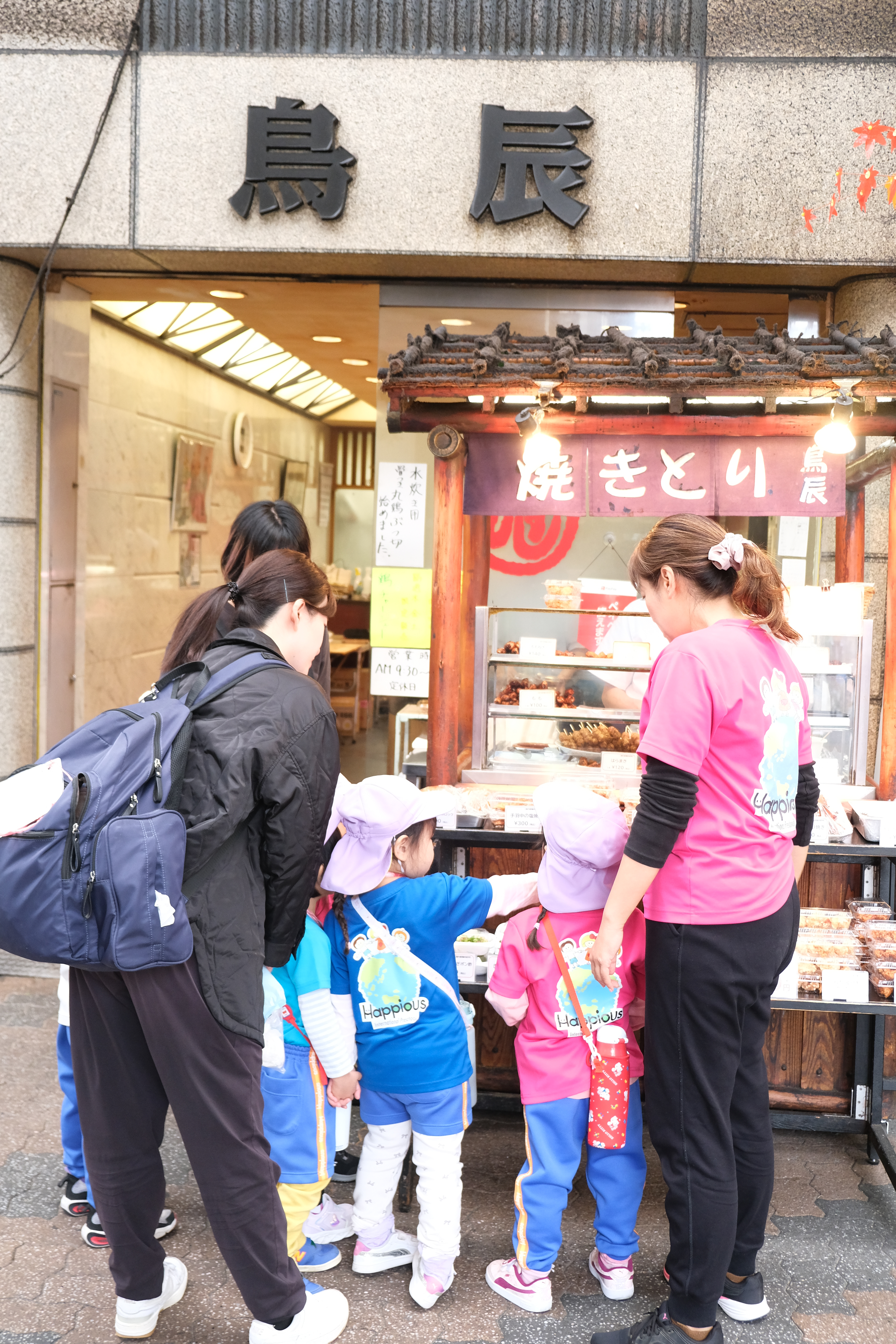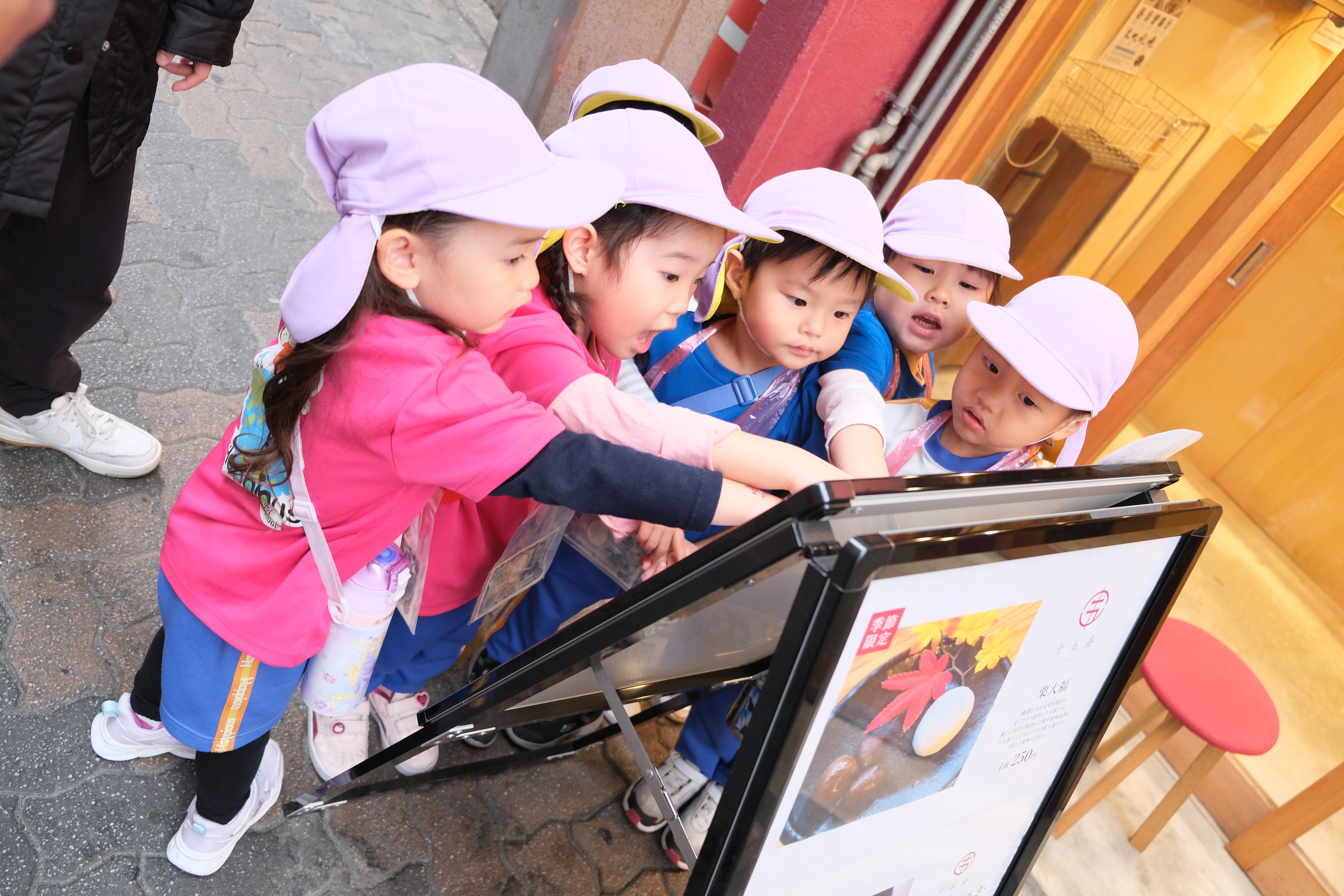 11月のテーマ「Food」に合わせて、年少クラスの子どもたちは園の近くにある「空堀商店街」へ