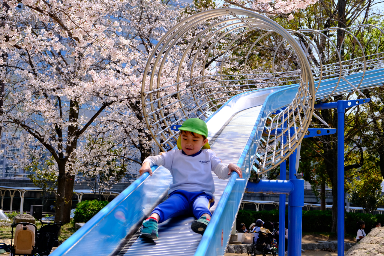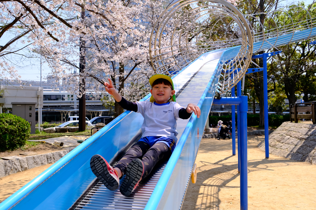 大阪城公園では、それぞれが思い思いに遊具で遊びました。